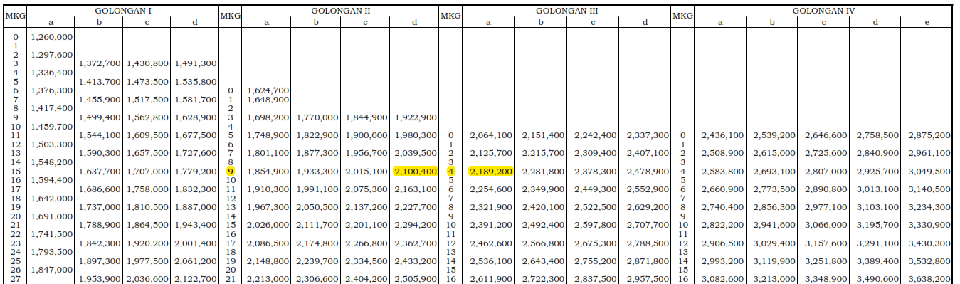 aturan yang mengatur jika CPNS golongan IIc masa kerja golongannya 3 tahun 0 bulan itu dimana ya? karena saya bingung mkg cpns golongan IIb dan IIa berapa