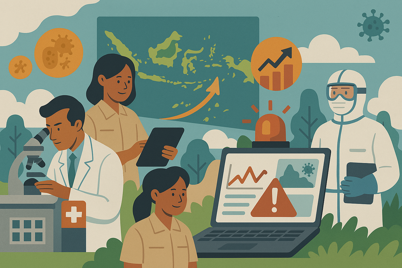 Sistem Kewaspadaan Dini dan Respon (SKDR) merupakan salah satu komponen utama dalam sistem surveilans epidemiologi Indonesia, yang berfungsi untuk mendeteksi secara dini dan merespons potensi Kejadian Luar Biasa (KLB) dari penyakit menular. Dalam beberapa tahun terakhir, terutama pasca pandemi COVID-19, urgensi penguatan SKDR semakin dirasakan oleh para pemangku kepentingan di sektor kesehatan. Digitalisasi menjadi salah satu strategi utama yang diadopsi untuk meningkatkan efektivitas dan efisiensi sistem ini. Namun, di tengah percepatan teknologi, berbagai tantangan signifikan juga muncul, terutama dalam hal infrastruktur, integrasi sistem, serta kompetensi sumber daya manusia di lapangan.